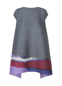 This round-neck, sleeveless tunic with horizontal pleats is from a series that uses stencil printing to express a cut-and-pasted pattern of colored paper while preserving the graininess of the colors and misalignment of the print. It has buttons on both sides. Product Information Material: 100% polyester Country of origin: Japan neckline/collar:round neck others:Button (both sides)