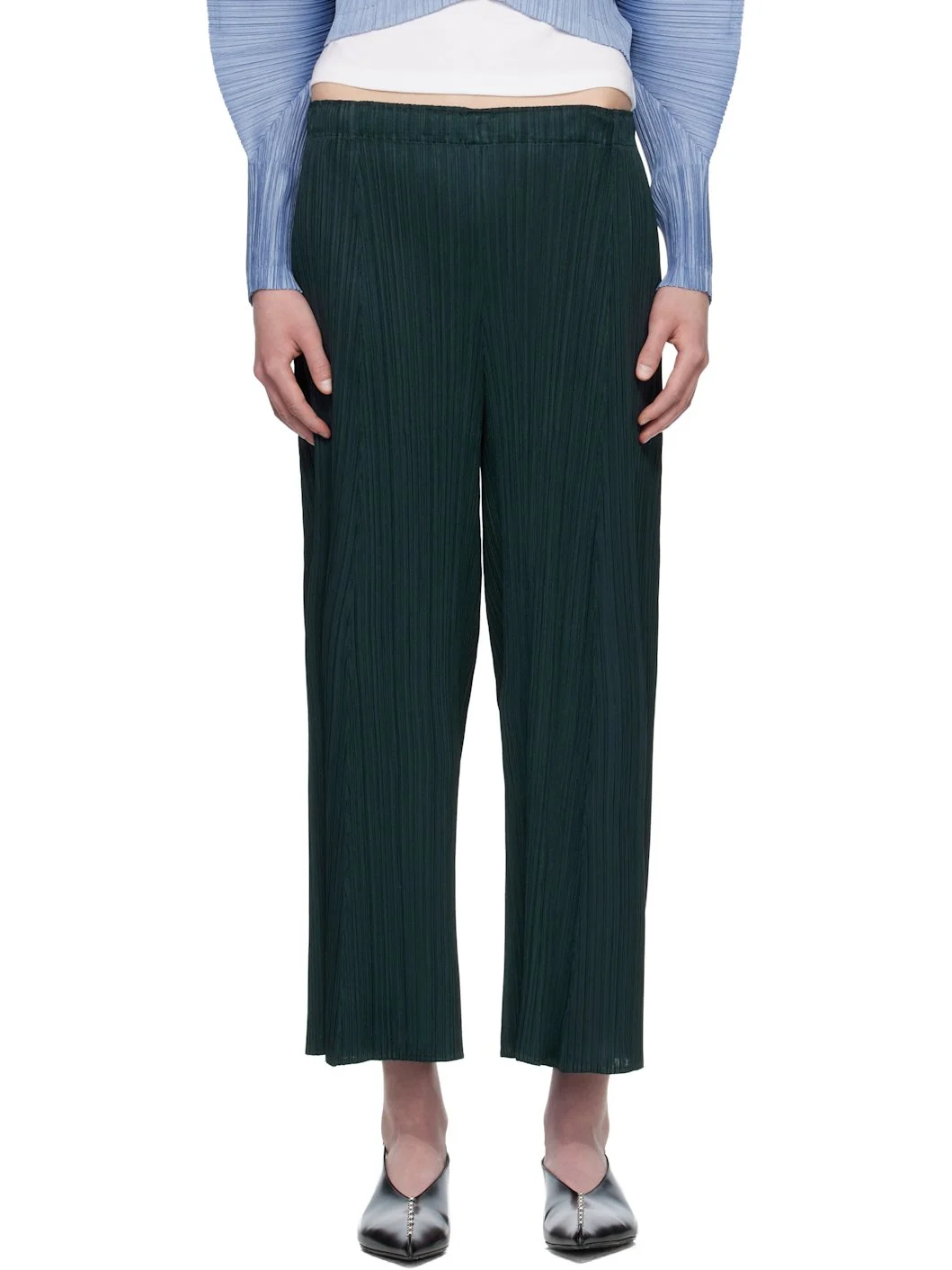 Garment-pleated tricot trousers. · Wide-leg, flared · Elasticized waistband · Two-pocket styling · Creased legs Supplier color: Charcoal 100% polyester. Made in Japan 261941F087004