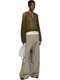 Garment-pleated taffeta tote in gray. · Webbing carry handles · Adjustable and detachable webbing crossbody strap · Patch pocket at face and back · Drawstring closure · H9.25" x W6" x D4" Supplier color: Light gray 100% polyester. Made in Philippines 252941F049003