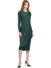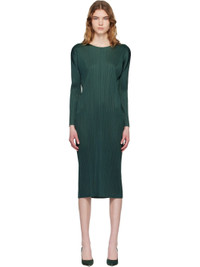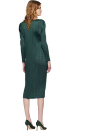 Garment-pleated tricot midi dress. · Round neck · Dolman sleeves Supplier color: Forest Green 100% polyester. Made in Japan 261941F055002