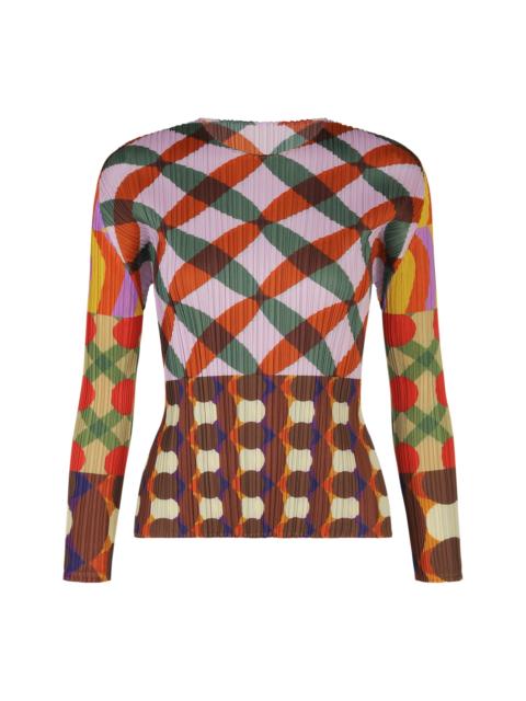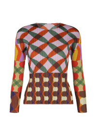 This round-neck, long-sleeved top features a print with geometric patterns that incorporate a list of combinations of various body movements, such as joining the hands, folding the arms, and crossing the legs. Product Information Material: 100% polyester Made in Japan Neckline / Collar:crew neck