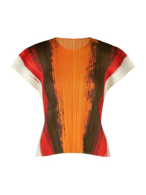 This round-neck, short-sleeved top is from a print series that expresses powerful jumping. It is characterized by its lines that convey an energetic feeling. Product Information Material: 100% polyester Made in Japan Neckline / Collar:Crew Neck