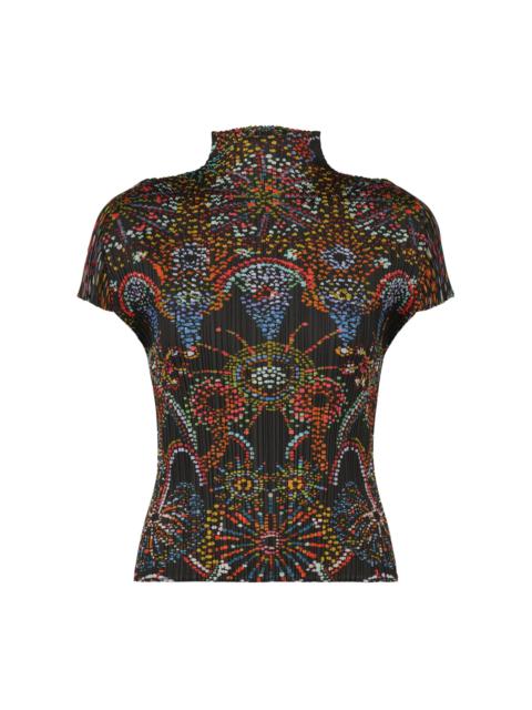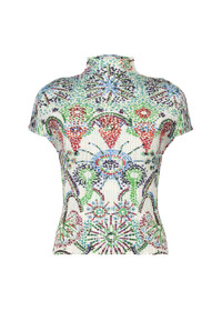 This high-neck, short-sleeved top has a print featuring the motif of fireworks that evoke a sense of innocence and warmth. It depicts fireworks with dots that look like blurred ink. Product Information Material: 100% polyester Made in Japan Neckline / Collar:High neck