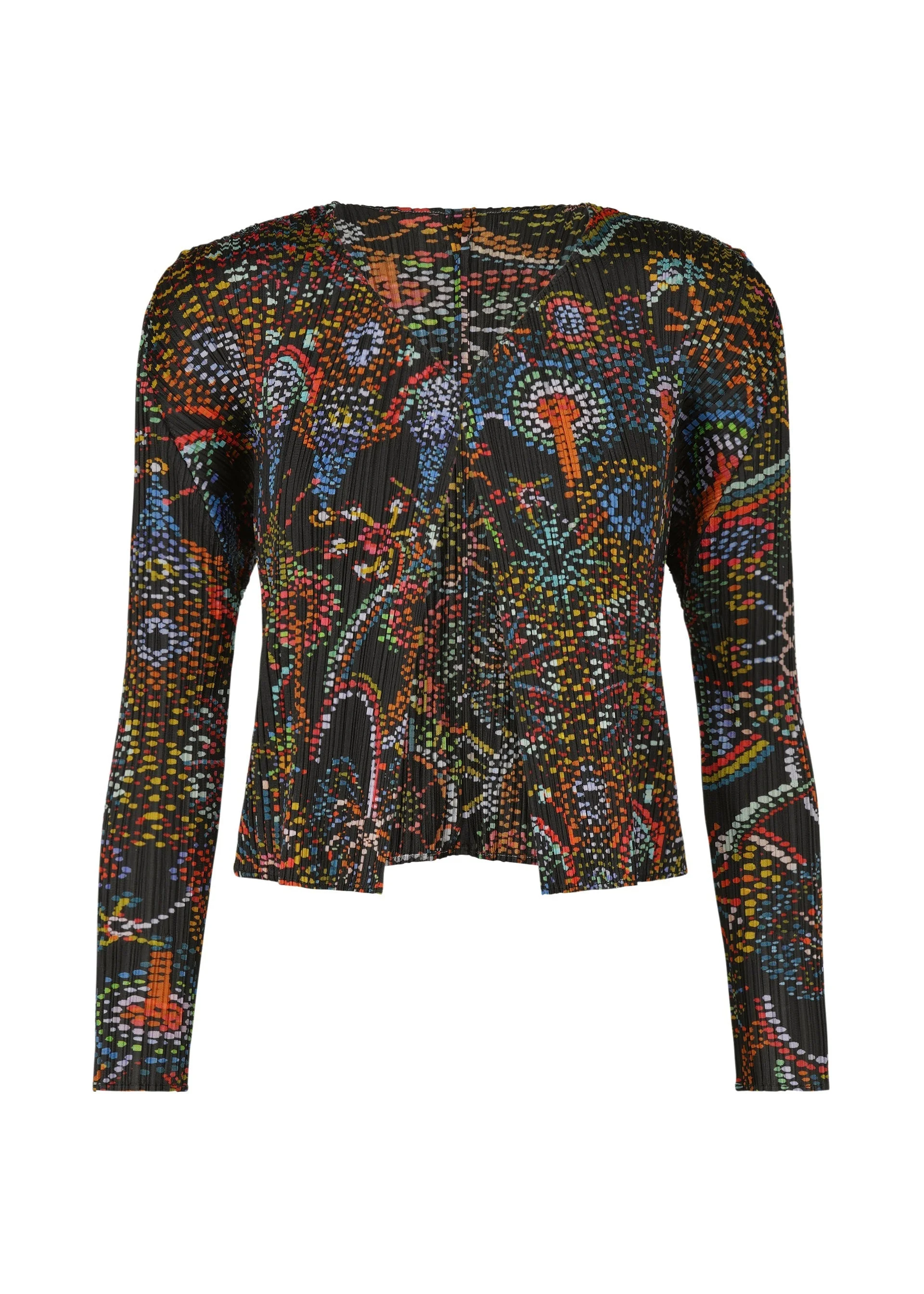 This cardigan has a print featuring the motif of fireworks that evoke a sense of innocence and warmth. It depicts fireworks with dots that look like blurred ink. Product Information Material: 100% polyester Made in Japan Neckline / Collar:No collar / crew neck