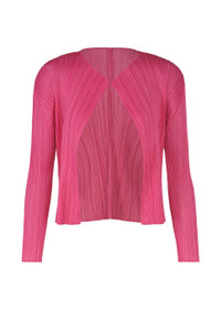This cardigan is made from new material with a beautiful sheer look. You can enjoy mixing and matching colors and shapes by layering them with other items from the same series or with items from printed series. Product Information Material: 100% polyester Made in Japan Neckline / Collar:No collar / crew neck