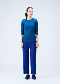MONTHLY COLORS : AUGUST features graceful silhouettes in subtle ocean colors. These pleated pants have a wide leg, two side pockets, and an elastic waist. Product Code: PP38-JF124 Material: 100% Polyester Care: Machine wash cold, gentle cycle. Only non-chlorine bleach, when needed. Do not tumble dry. Flat dry in the shade. Do not iron. Do not dryclean.