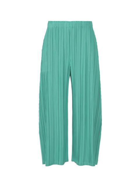 These flared pants are made from soft-textured fabric. They have slits and pockets on both sides. Product Information Material: 100% polyester Country of origin: Japan Waist specifications:rubber Pocket (position):both sides Slit (position):both sides
