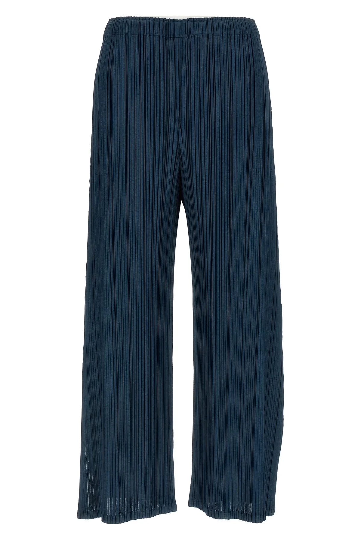 cod. PP58JF28375 'Mellow Pleats' pleated fabric pants, elastic waistband, pockets, wide leg, split on the leg bottom. Color: Blue Size & Fit: true to size fit - JAPAN size Composition: 100% polyester Made in: Japan