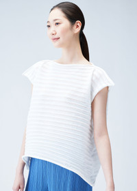 MESH KNIT is a sheer top series with subtle pleated mesh, ideal for warmer weather. This top has a wide fit, accentuated cap sleeves, and a bateau neck. Product Code: PP46-KK861 Material: 74% Polyester, 21% Rayon, 5% Nylon (Knit) Care: Care: Machine wash cold, gentle cycle. Only non-chlorine bleach, when needed. Do not tumble dry. Flat dry in the shade. Warm iron. Dryclean any solvent, short cycle.