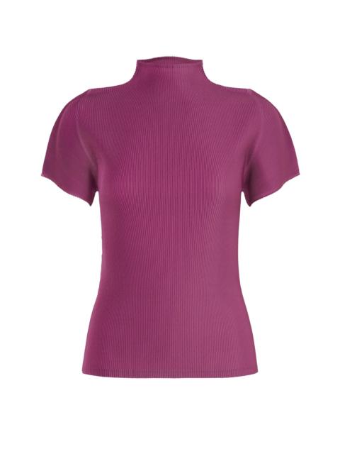 This soft and lightweight high-neck, short-sleeved top is finished with one-millimeter fine pleats. Product Information Material: 100% polyester Made in Japan Neckline / Collar:High neck