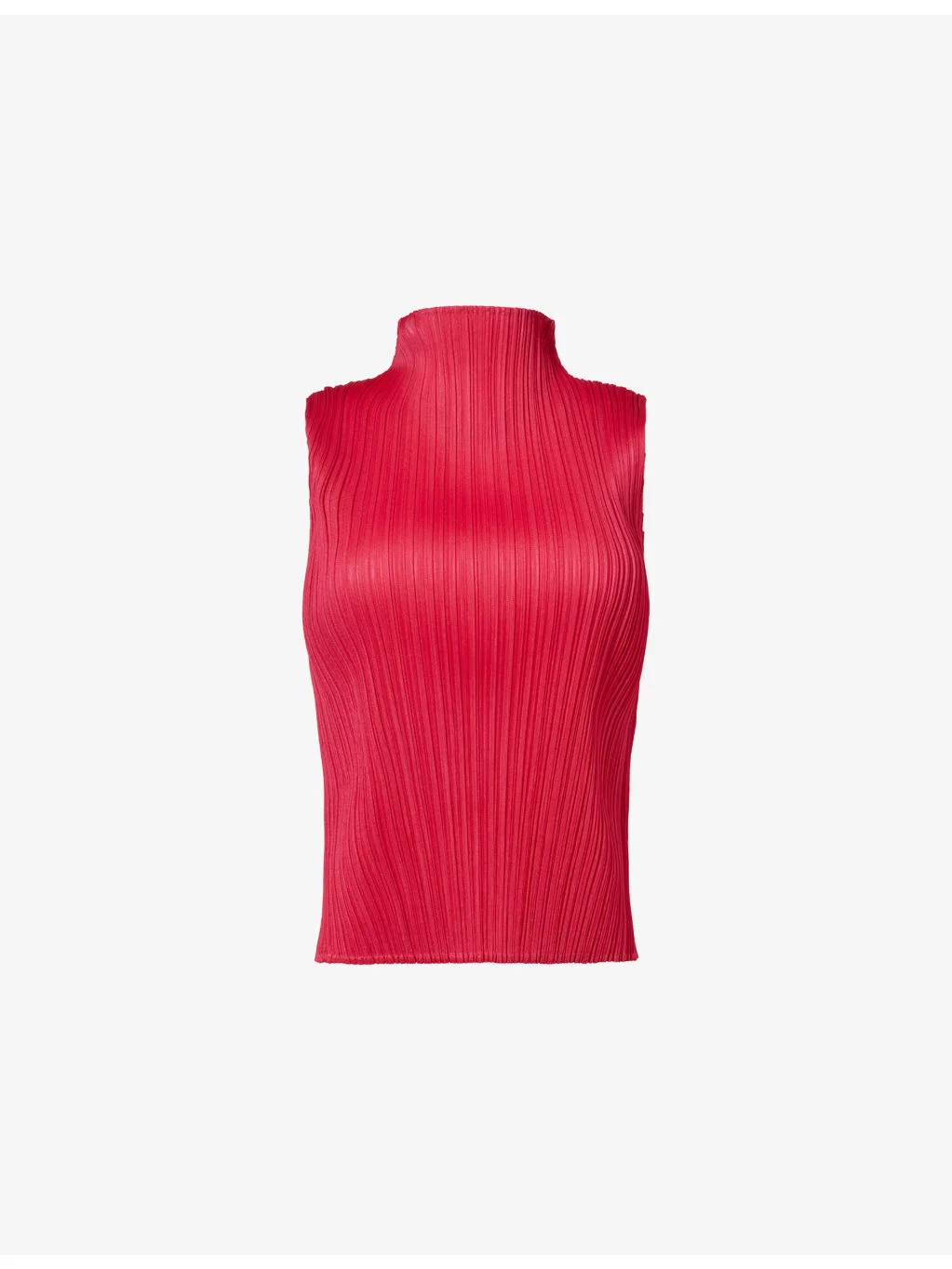 PRODUCT DETAILS - Pleats Please Issey Miyake knit top - 100% polyester - Regular fit, mock neck, sleeveless, all-over pleats - Machine wash at 30°C - Made in Japan - True to size - Size 3: length 21.5in / 55cm - Model is 5ft 10in/1.78m and wears a size 3 - Lightweight, stretchy - This garment’s sizing is based on height and doesn’t conform to standard sizes. Please refer to the size guide for your desired length. Ref: R04585793