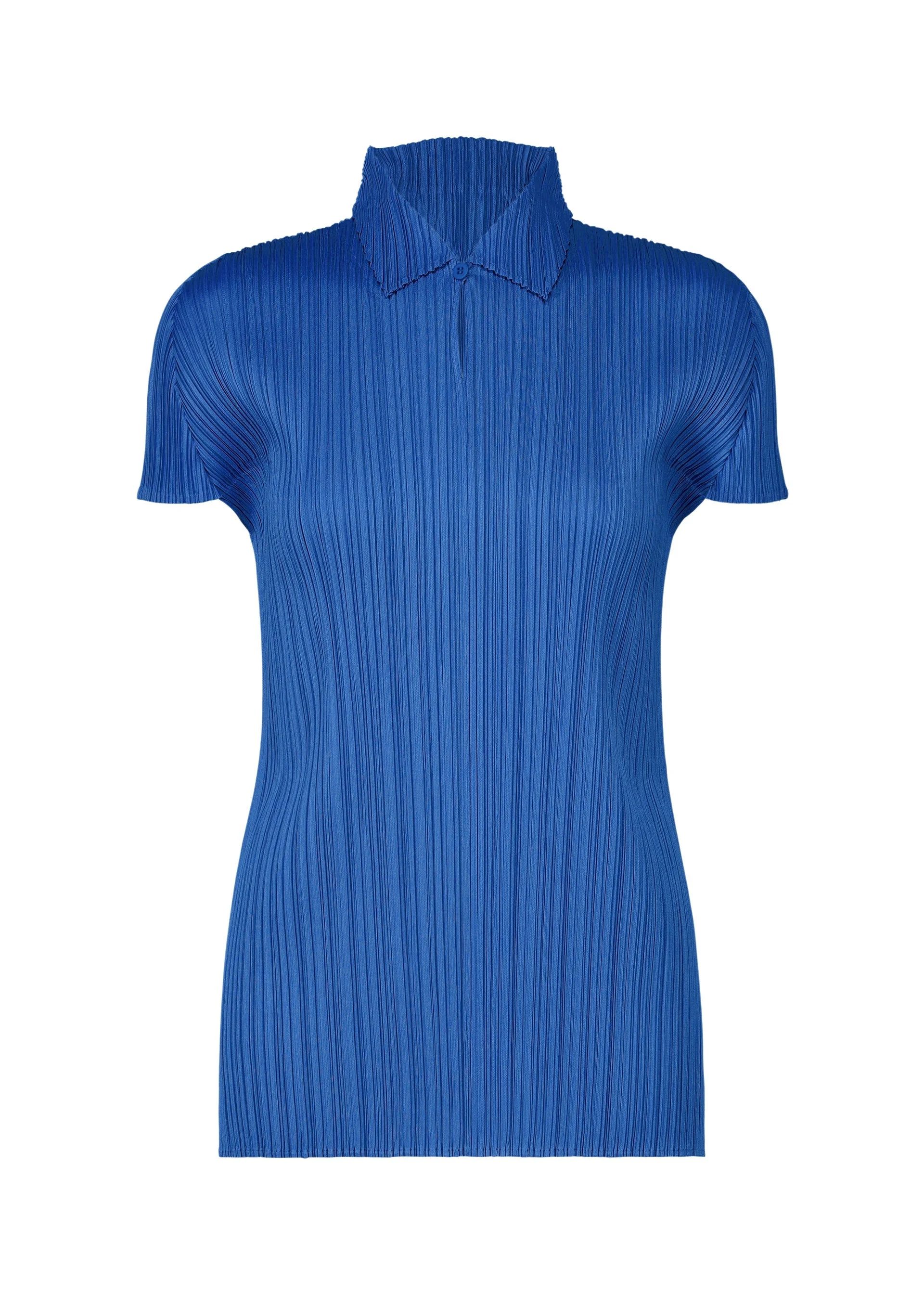 This collared, short-sleeved top is available in light colors that make you want to dance with every step. With its simple silhouette, it allows you to enjoy colorful layered outfits. It has a buttoned collar and slits on both sides. Product Information Material: 100% polyester Made in Japan Neckline / Collar:Regular Color Front opening:Half button Slit (position):Both sides