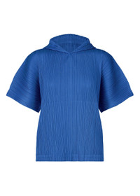 This hooded, half-sleeve top is available in light colors that make you want to dance with every step. With its simple silhouette, it allows you to enjoy colorful layered outfits. It has pockets on both sides. Product Information Material: 100% polyester Made in Japan Pocket (position):Both sides others:Food