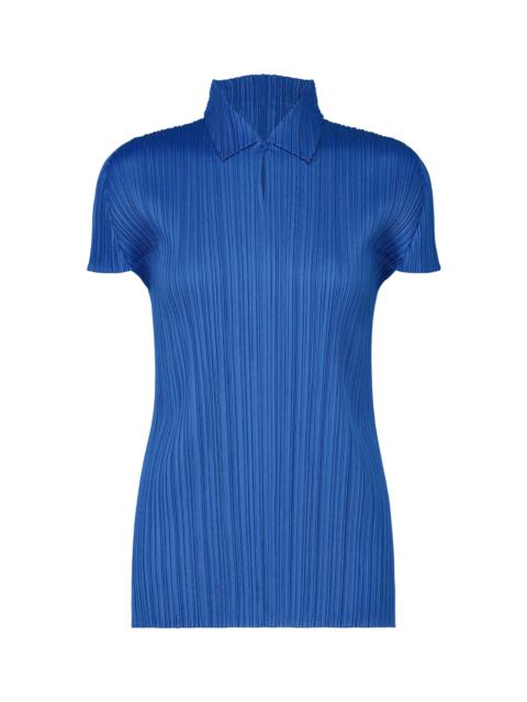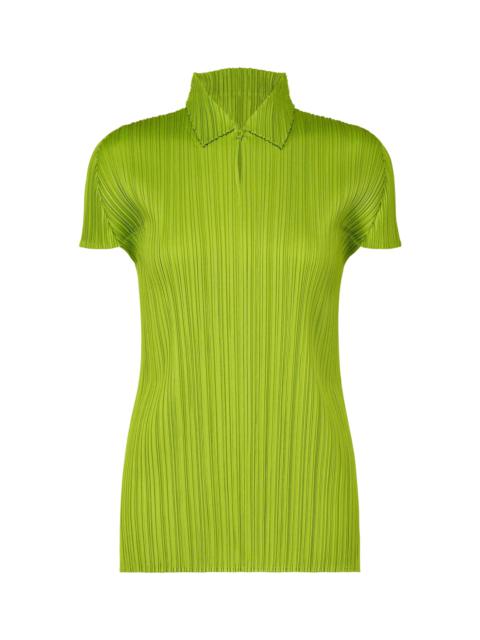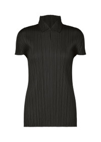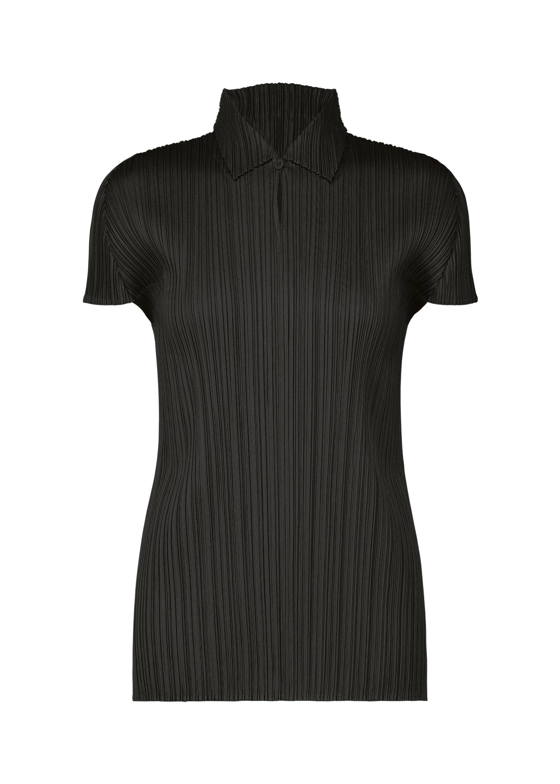 This collared, short-sleeved top is available in light colors that make you want to dance with every step. With its simple silhouette, it allows you to enjoy colorful layered outfits. It has a buttoned collar and slits on both sides. Product Information Material: 100% polyester Made in Japan Neckline / Collar:Regular Color Front opening:Half button Slit (position):Both sides