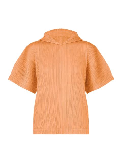 This hooded, half-sleeve top is available in light colors that make you want to dance with every step. With its simple silhouette, it allows you to enjoy colorful layered outfits. It has pockets on both sides. Product Information Material: 100% polyester Made in Japan Pocket (position):Both sides others:Food
