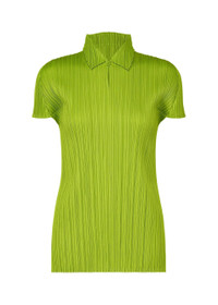 This collared, short-sleeved top is available in light colors that make you want to dance with every step. With its simple silhouette, it allows you to enjoy colorful layered outfits. It has a buttoned collar and slits on both sides. Product Information Material: 100% polyester Made in Japan Neckline / Collar:Regular Color Front opening:Half button Slit (position):Both sides