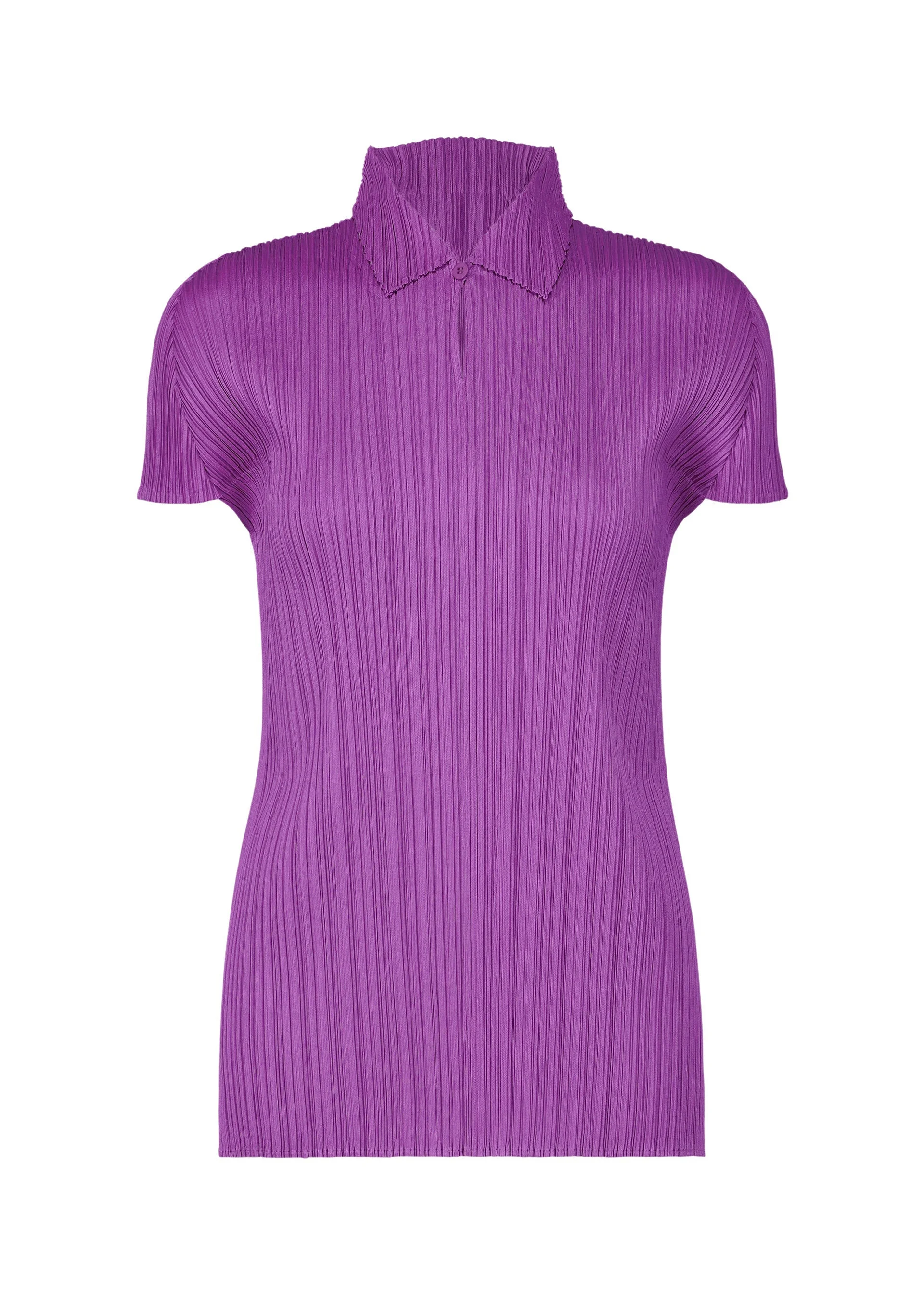 This collared, short-sleeved top is available in light colors that make you want to dance with every step. With its simple silhouette, it allows you to enjoy colorful layered outfits. It has a buttoned collar and slits on both sides. Product Information Material: 100% polyester Made in Japan Neckline / Collar:Regular Color Front opening:Half button Slit (position):Both sides