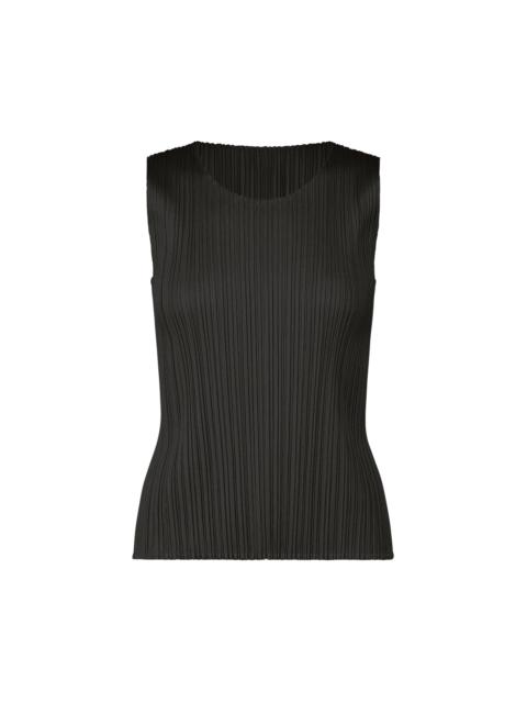 This round-neck, sleeveless top is available in light colors that make you want to dance with every step. With its simple silhouette, it allows you to enjoy colorful layered outfits. Product Information Material: 100% polyester Made in Japan Neckline / Collar:crew neck