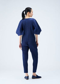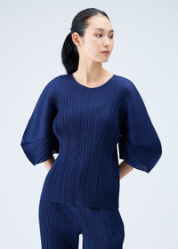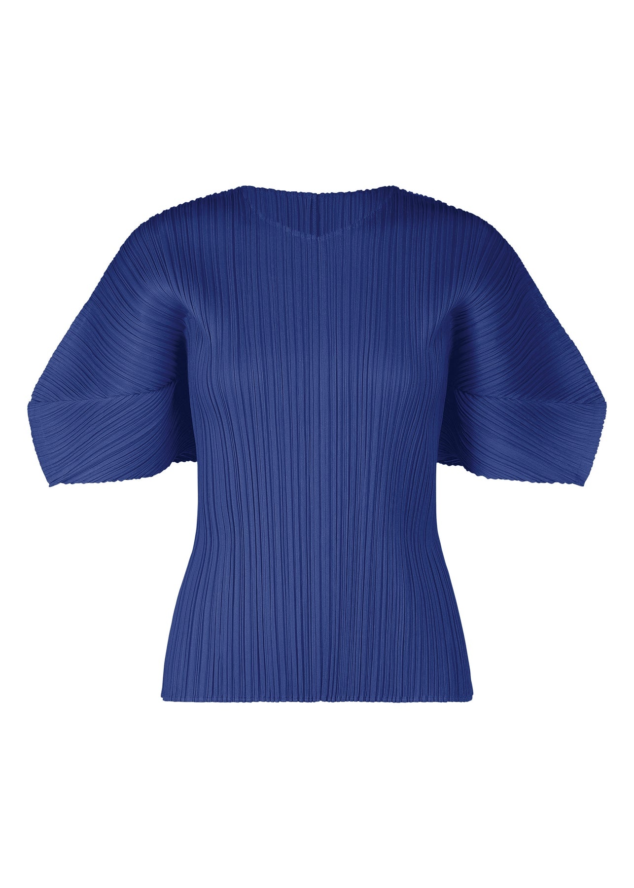 MONTHLY COLORS : AUGUST features graceful silhouettes in subtle ocean colors. This pleated top has a straight shape, scoop neck, and architectural elbow-length sleeves. Product Code: PP38-JK122 Material: 100% Polyester Care: Machine wash cold, gentle cycle. Only non-chlorine bleach, when needed. Do not tumble dry. Flat dry in the shade. Do not iron. Do not dryclean.