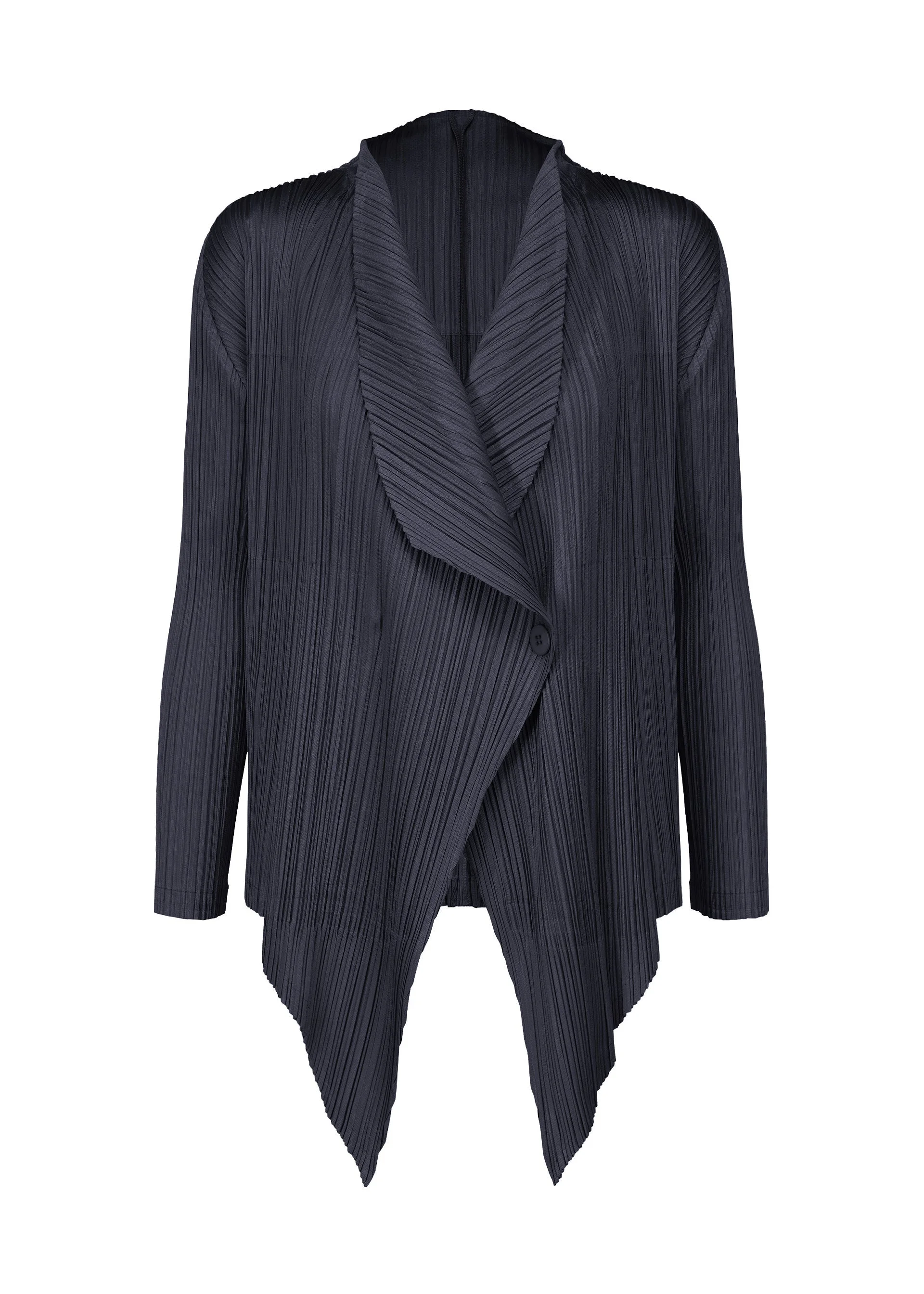 This buttoned cardigan is available in colors that depict the way a townscape gradually changes day by day. Folds are applied before the pleating process to create variations in the pleat lines. Just like a shifting townscape, this cardigan allows you to enjoy a variety of looks depending on how it is layered or paired with different colors. It has pockets on both sides. Product Information Material: 100% Polyester Made In Japan Front opening:button Pocket (position):Both sides
