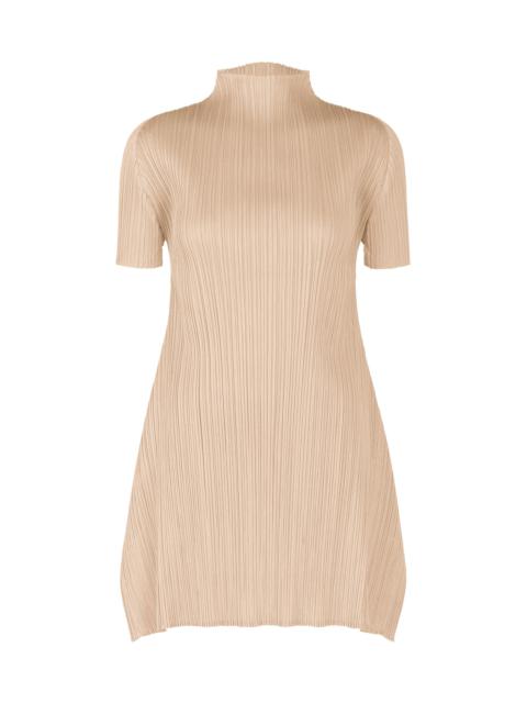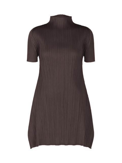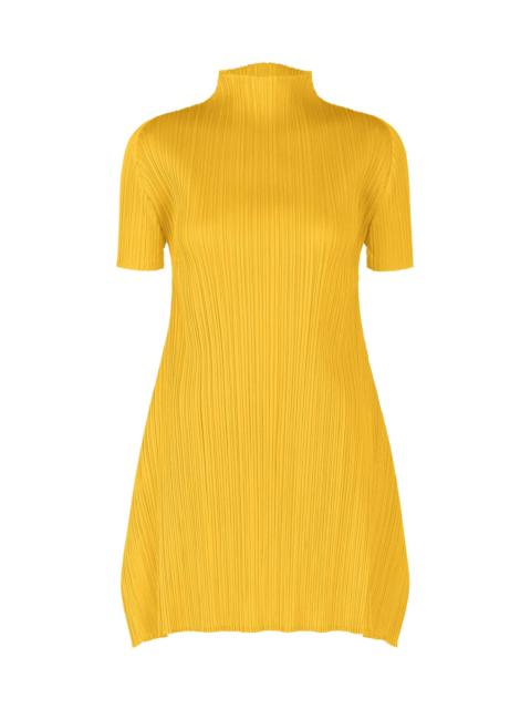 This high-neck, short-sleeved tunic is available in colors inspired by the strong feel of leaping from the earth, the scent of swirling sand and soil, and the energetic feeling of jumping. It is characterized by its rounded, airy silhouette. It has slits on both sides. Product Information Material: 100% polyester Made in Japan Neckline / Collar:High Neck Slit (Position):Both Sides