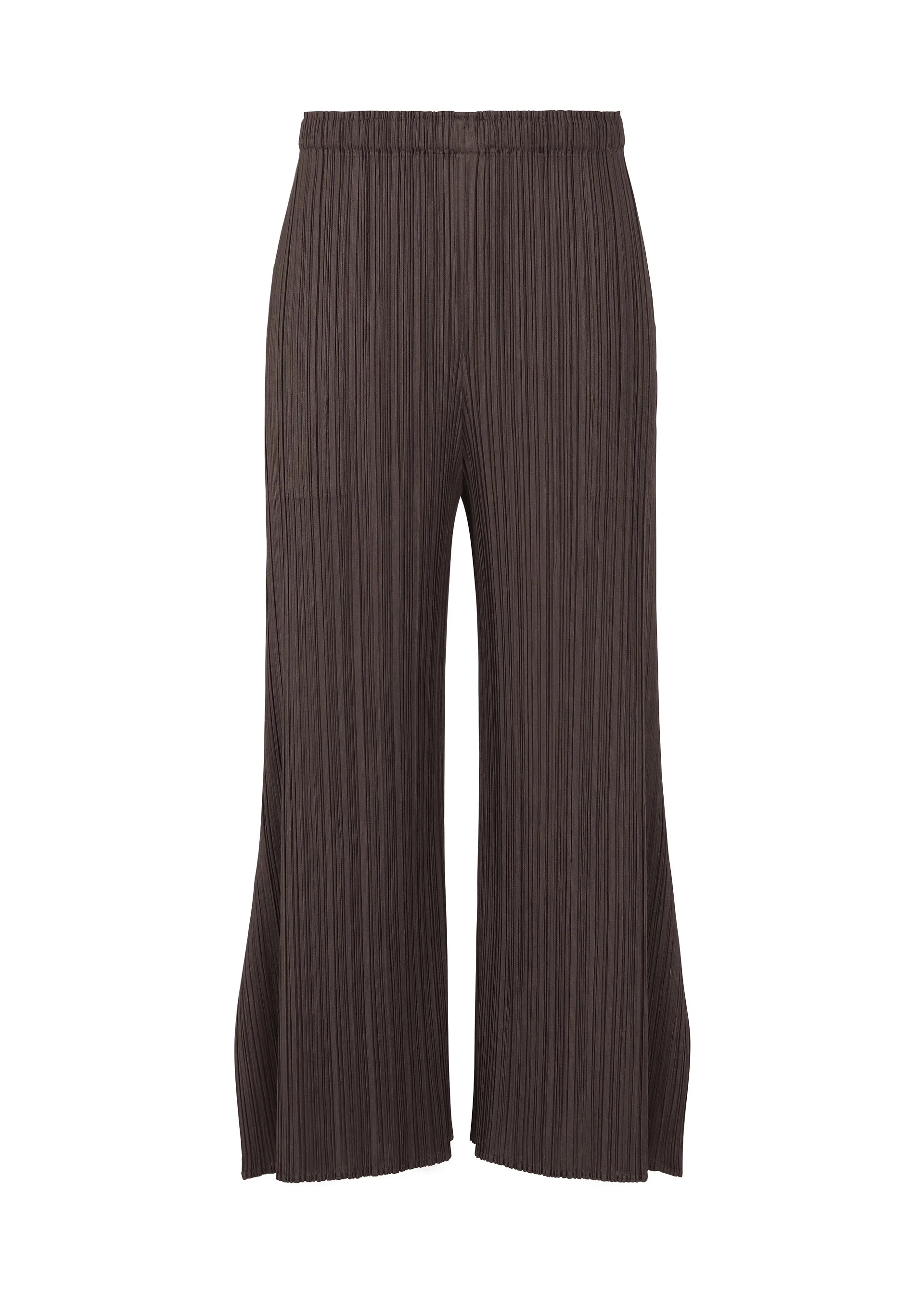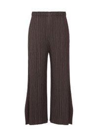 These thick pants are available in colors inspired by the strong feel of leaping from the earth, the scent of swirling sand and soil, and the energetic feeling of jumping. They are characterized by their rounded, airy silhouette. They have pockets and slits on both sides. Product Information Material: 100% polyester Made in Japan Waist Specifications:Rubber Pocket (Position):Both Sides Slit (Position):Both Sides