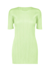 This round-neck, short-sleeved tunic is available in colors reminiscent of the gentle light of early summer. The green gradation is expressed in soft, subdued hues. There is a slit on the left side. Product Information Material: 100% polyester Made in Japan Neckline / Collar:Crew neck Slit (position):left