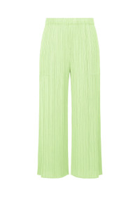 These straight pants are available in colors reminiscent of the gentle light of early summer. The green gradation is expressed in soft, subdued hues. There are pockets on both sides. Product Information Material: 100% polyester Made in Japan Waist Specifications:Rubber Pocket (position):Both sides
