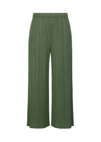 These straight pants are available in colors reminiscent of the gentle light of early summer. The green gradation is expressed in soft, subdued hues. There are pockets on both sides. Product Information Material: 100% polyester Made in Japan Waist Specifications:Rubber Pocket (position):Both sides