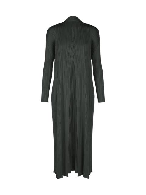 This long coat features colors that evoke people gathering and joyfully dancing. The flared silhouette gives an elegant impression. There are pockets on both sides. Product Information Material: 100% polyester Made in Japan Neckline / Collar:No collar / V-neck Pocket (position):Both sides