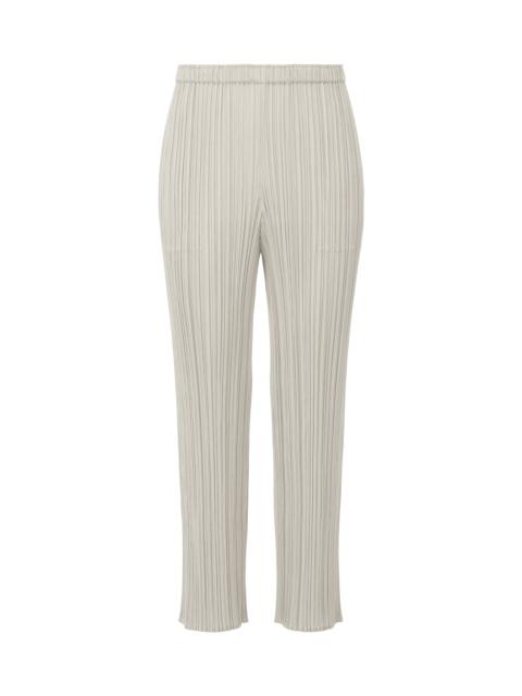 These straight pants are available in smoky color tones that evoke the contrast between stillness and motion, and the atmosphere of a stage. They have pockets on both sides. Product Information Material: 100% polyester Made in Japan Waist specifications:rubber Pocket (position):Both sides