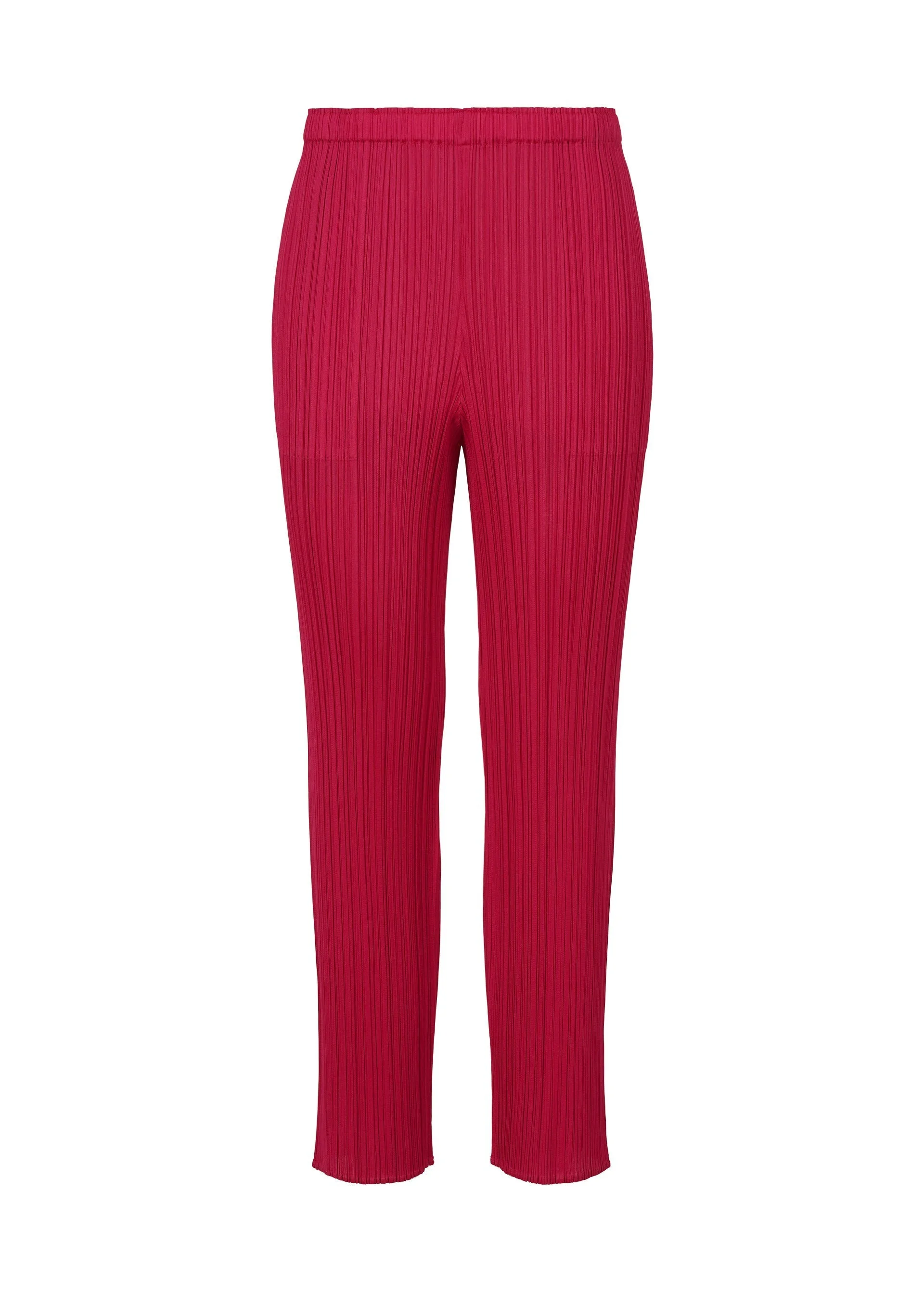 NEW COLORFUL BASICS offers core styles in joyful colors for everyday living. This pleated pant has a slim leg, elastic waist, and two side pockets.