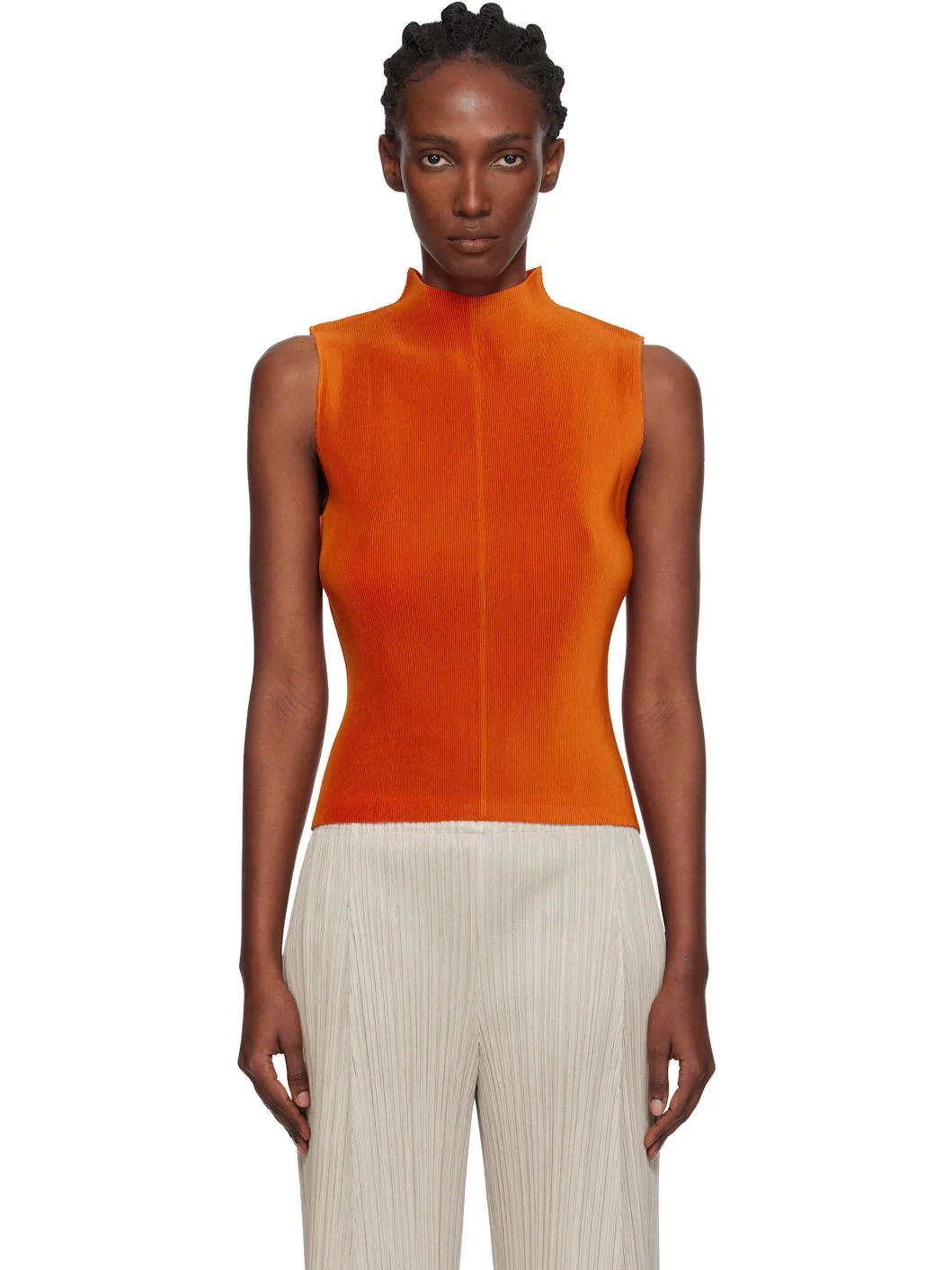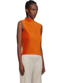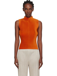 Garment-pleated tricot tank top. · Mock neck · Central seam at front and back · Keyhole at back collar Supplier color: Orange 100% polyester. Made in Japan 252941F111015