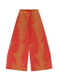 Designed in a range of comfortable everyday styles, PIQUANT is a vibrant printed series that expresses the sensation felt after eating spicy food. These pleated pants have a wide leg, elastic waist, two side pockets, and two side slits at the hems. Product Code: PP46-JF704 Material: 100% Polyester (Knit) Care: Care: Machine wash cold, gentle cycle. Only non-chlorine bleach, when needed. Do not tumble dry. Line dry in the shade. Do not iron. Do not dryclean.