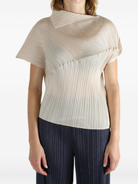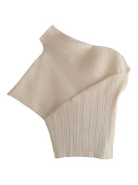 pleated asymmetric top Highlights - Light beige - Pleated texture - Short sleeves - Asymmetrical neck Imported Composition Polyester 100% SIZE & FIT FittingInformation This piece's size conversion is based on body measurements; for help with this item's sizing, refer to our Size & Fit Guide Washing instructions Read Manufacturer Guidelines