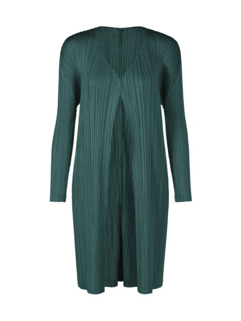 This long cardigan is available in colors inspired by temperature differences that can be seen through infrared thermography cameras. Warmth is expressed with yellow and pink tones, while coolness is expressed in blue-gray and blue-green. There are pockets on both sides.
