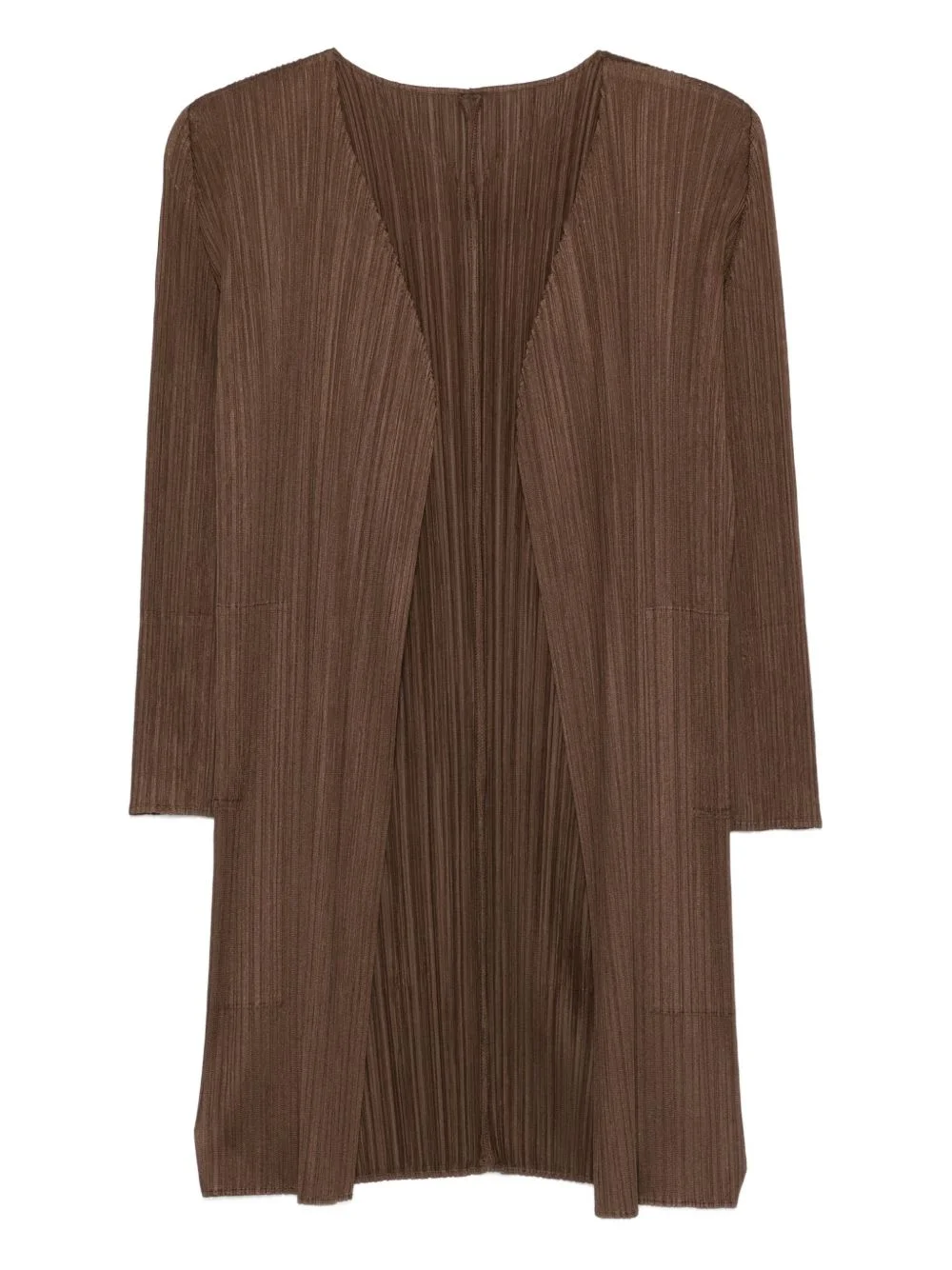 pleated coat Highlights - Brown - Pleated texture - Open front - Long sleeves - Panelled construction - Straight hem Imported Composition Polyester 100% SIZE & FIT Model measurements Height 5 ft 9 in(1.76 m) Bust/Chest 31.88 in(81 cm) Hips 35.43 in(90 cm) Waist 24.8 in(63 cm) Washing instructions Machine Wash