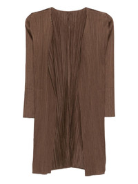 pleated open-front coat Highlights - Brown - Pleated - Open front - V-neck Imported Composition Polyester 100% SIZE & FIT Model measurements Height 5 ft 10 in(1.79 m) Bust/Chest 31.88 in(81 cm) Hips 35.43 in(90 cm) Waist 23.62 in(60 cm) Washing instructions Machine Wash