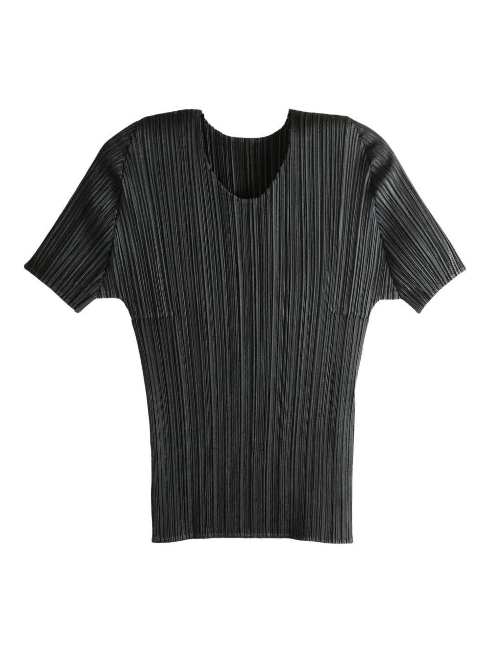 pleated short-sleeve top Highlights - Black - Pleated design - Short sleeves - Round neck Imported Composition Polyester 100% Washing instructions Read Manufacturer Guidelines