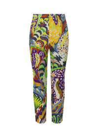 SNOWRUNNER is a printed series featuring animal motifs nestled amongst tropical jungle flora. These pleated pants have a slim leg, two side pockets, and an elastic waist. Product Code: PP38-JF692 Material: 100% Polyester Care: Machine wash cold, gentle cycle. Only non-chlorine bleach, when needed. Do not tumble dry. Flat dry in the shade. Do not iron. Do not dryclean.