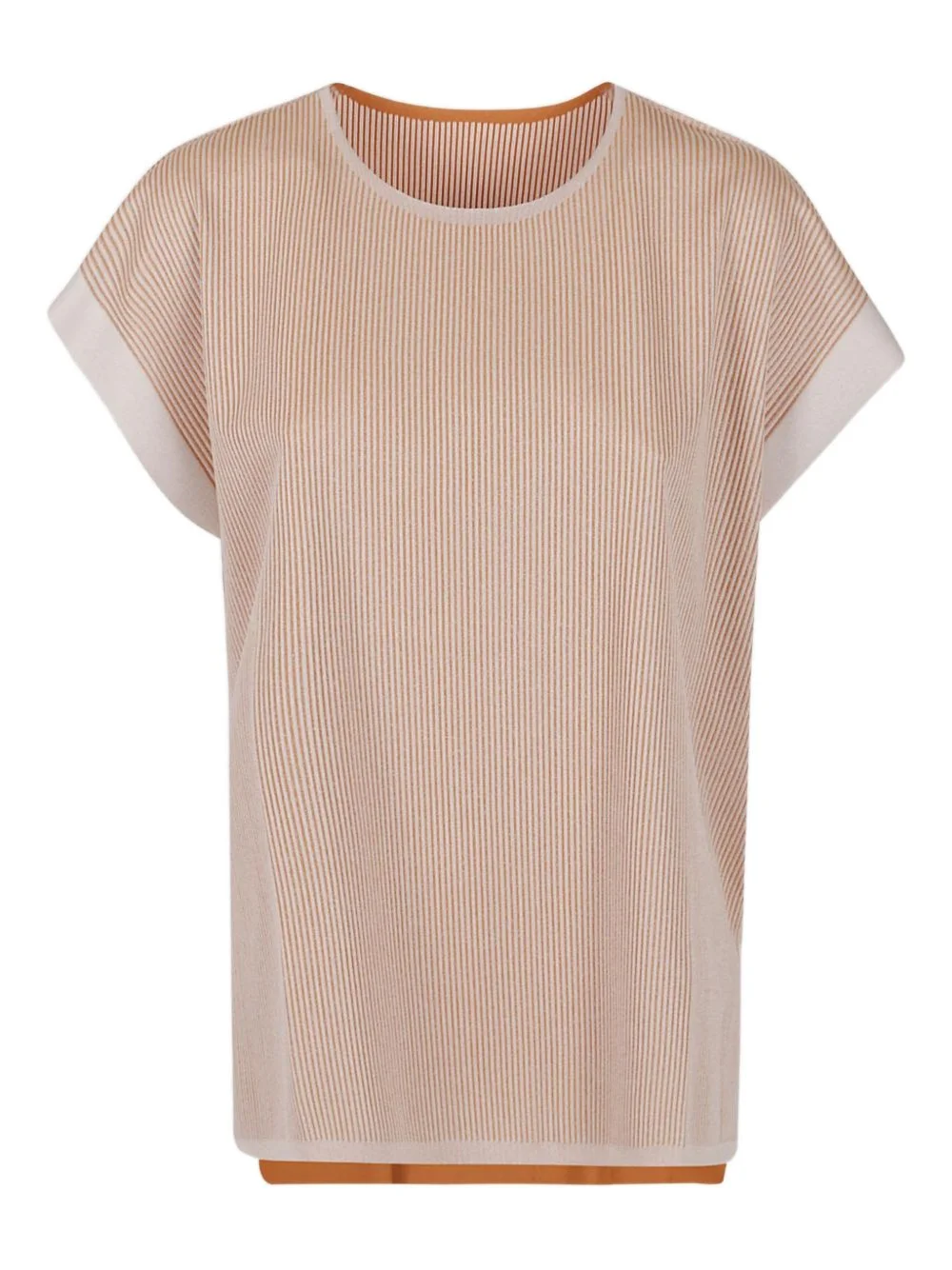 pleated T-shirt Highlights - Light brown - Pleated design - Round neck - Short sleeves - Straight hem - Contrast trims Imported Composition Nylon 45%, Polyester 45%, Polyurethane 10% Washing instructions Read Manufacturer Guidelines