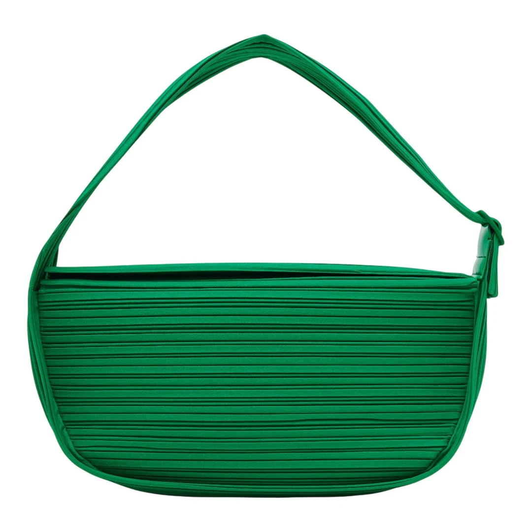 600062316GRN0OS / PP57AG521/00/62/FEB - Signature micro-pleated polyester construction - Half-moon curved silhouette - Adjustable shoulder strap - Top zip closure - Lightweight and packable - Maintains shape through pleating technology PLEATS PLEASE ISSEY MIYAKE Pleats Half Moon Bag delivers innovative Japanese design with the brand's signature pleating technology. Crafted from durable pleated polyester in vibrant green, featuring the label's distinctive micro-pleating that maintains shape while offering flexibility. The curved half-moon silhouette and adjustable strap create a contemporary accessory that embodies Miyake's architectural approach to fashion.