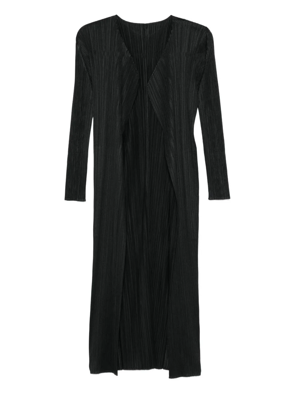 pleated-effect open-front coat Highlights - Black - Open front - Long sleeves - Pleated design Imported Composition Polyester 100%, Silk 50%, Nylon 50% SIZE & FIT Model measurements Height 5 ft 11 in(1.8 m) Bust/Chest 32.28 in(82 cm) Hips 35.82 in(91 cm) Waist 25.19 in(64 cm) Washing instructions Read Manufacturer Guidelines