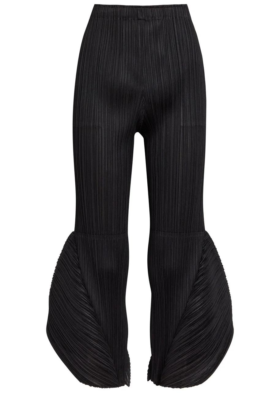 Pleats Please Issey Miyake Pleated Flared-leg Woven Cropped Trousers