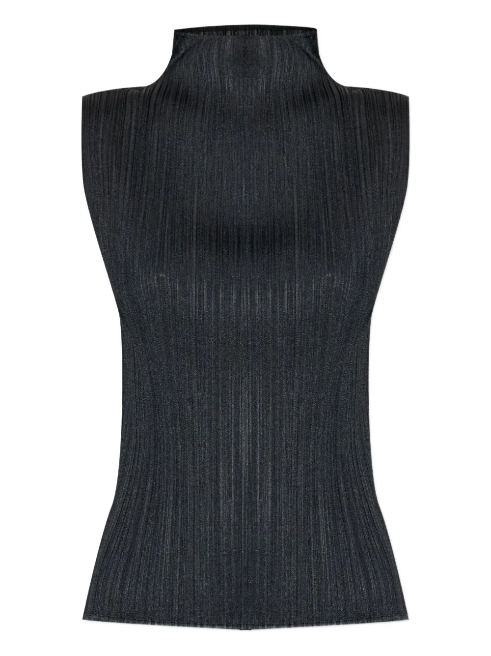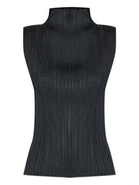 ribbed high-neck top Highlights - Black - High neck - Sleeveless - Vertical pleats Imported Composition Polyester 100%