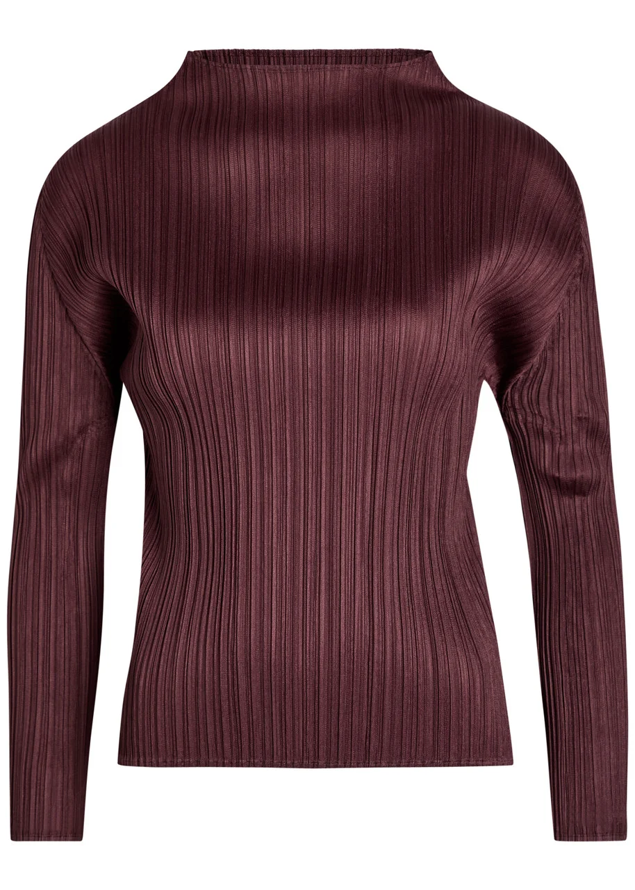 Info & Care Pleats Please Issey Miyake woven;top Pleated,;mock-neck Slips on 100% polyester Machine wash Issey Miyake sizing is based on height. Please refer to the Size & Fit section for more information. Size & Fit Length shoulder to hem: 22 inches/ 56cm Midweight Regular fit Model is 5'10"/ 178cm and wears a size 3 Size 1 = height: 150-155cm Size 2 = height: 156-160cm Size 3 = height: 161-165cm Size 4 = height: 166-170cm Size 5 = height: 171-175cm