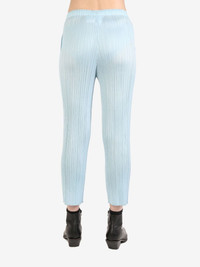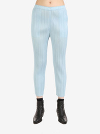 plisse-effect slim-cut trousers Highlights - Light blue - Plisse effect - Slim cut - Cropped leg - Elasticated waistband Imported Composition Polyester 100% SIZE & FIT FittingInformation This piece's size conversion is based on body measurements; for help with this item's sizing, refer to our Size & Fit Guide Washing instructions Machine Wash