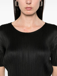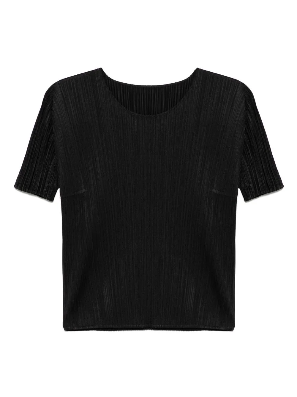 plisse-effect T-shirt Highlights - Black - Scallop edge - Round neck - Short sleeves - Straight hem Imported Composition Polyester 100% SIZE & FIT Model measurements Height 5 ft 10 in(1.78 m) Bust/Chest 33.46 in(85 cm) Hips 36.22 in(92 cm) Waist 23.22 in(59 cm) FittingInformation Designed for a slim fit that sits just away from the body offering a close yet comfortable fit The pleated construction on this piece allows for additional movement and flexibility in the fit This piece's size conversion is based on body measurements; for help with this item's sizing, refer to our Size & Fit Guide Washing instructions Machine Wash