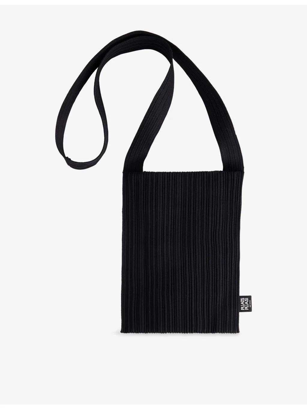PRODUCT DETAILS - Pleats Please Issey Miyake knitted bag - 100% polyester - Soft structure, one crossbody shoulder strap, one compartment, branded tab at side - Machine wash cold - Made in Japan - Lightweight, stretchy Ref: R04557097