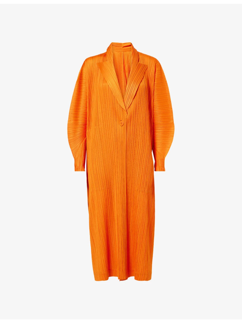 PRODUCT DETAILS - Pleats Please Issey Miyake knitted coat - 100% polyester - Button fastening - Relaxed fit, notched collar, long sleeves, unstructured shoulders, two side pockets, midi length - Machine wash cold - Made in Japan - Size 3: length 46in / 116.5cm - Model is 5ft 10in/1.78m and wears a size 3 - Lightweight, stretchy Ref: R04557105
